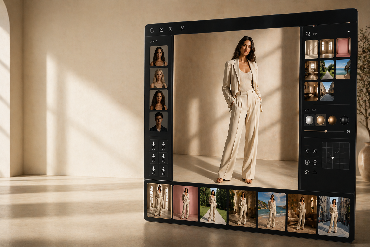 MIA remplace la pré-production traditionnelle par un studio génératif. Modèles, lumières, décors — composés en quelques secondes, exportés en 8K, sous votre seul contrôle.